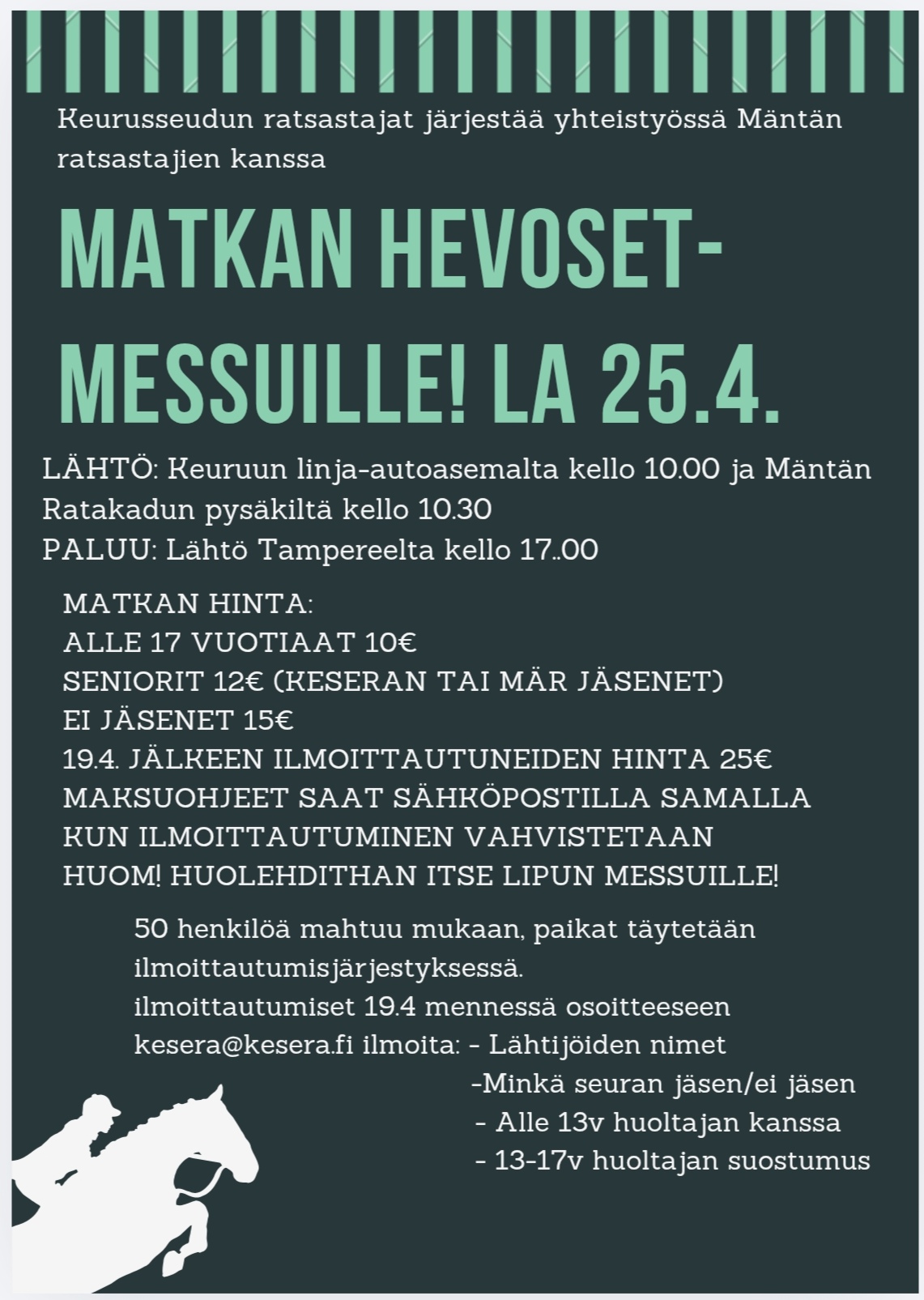 Seuran tiedottaminen tapahtuu seuran nettisivujen ja facebookin kautta. Pysyäksesi ajantasalla tykkää fb-sivuistamme!
