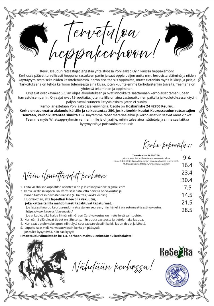 TERVETULOA MUKAAN SEURAMME TOIMINTAAN!